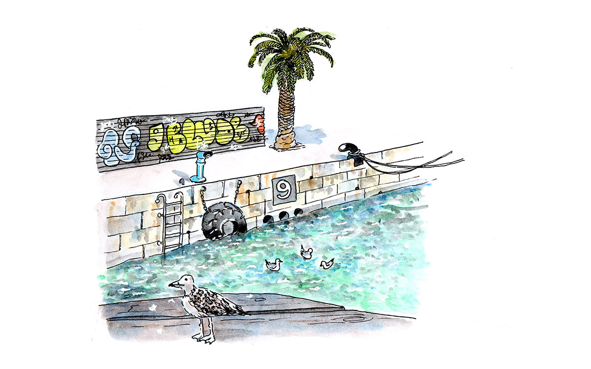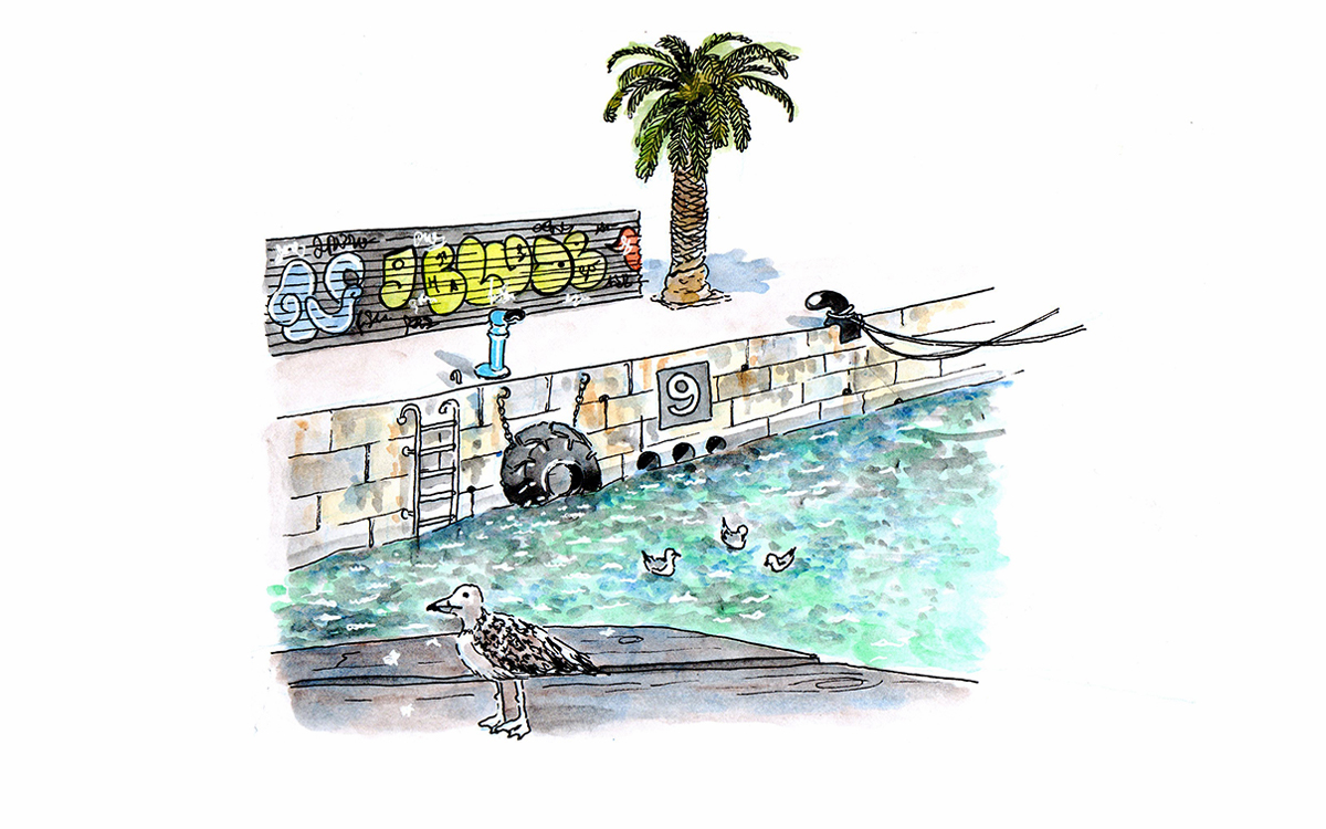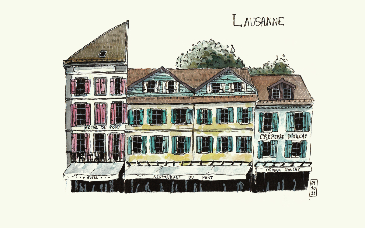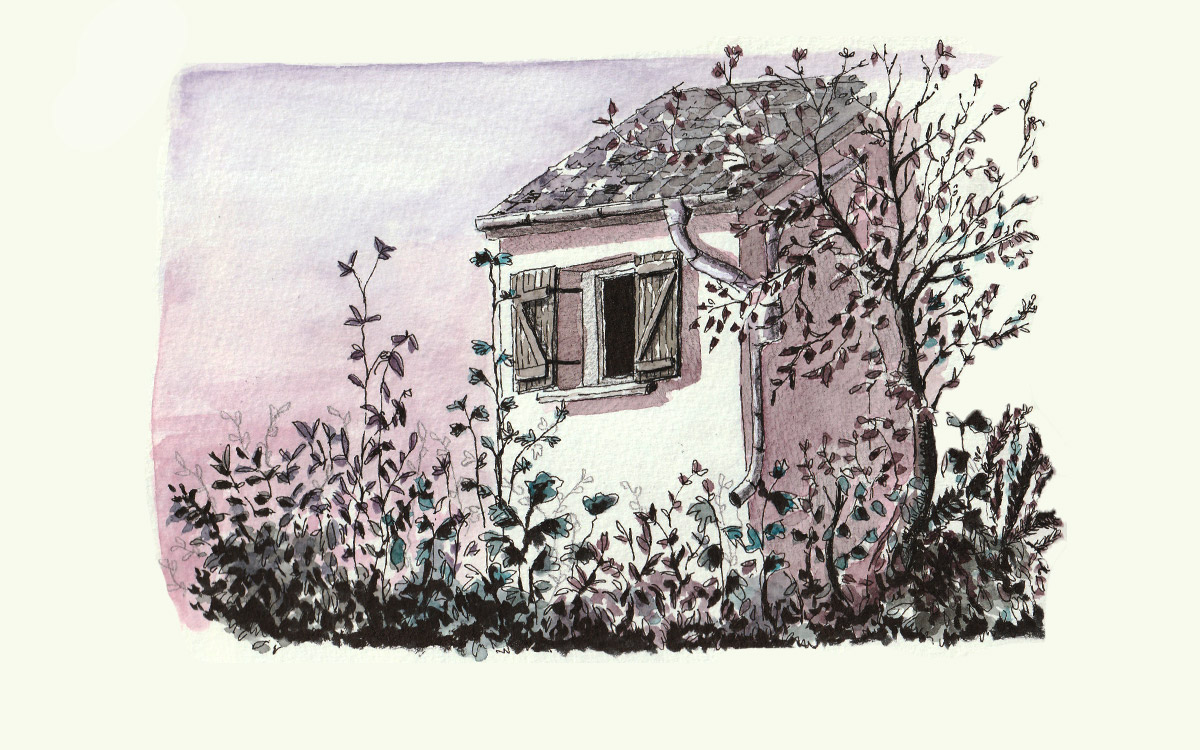 Watercolor and ink on paper, 14.8 x 21 cm.